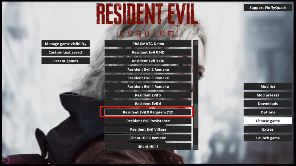 バイオレクイエム(バイオハザード9)のMODを管理する時に便利な「Fluffy Manager (ふわふわマネージャー)」の導入・初期設定・使い方インストールの方法を解説しています。